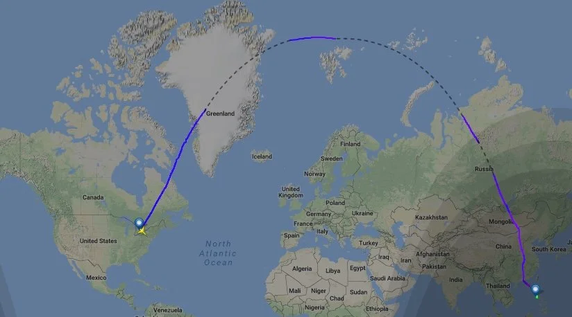This flight pathed over the north pole. Because it is a night flight all the shades are closed to let people sleep. So I was unable to see if I could find Santa’s workshop. (image provided by internet search)